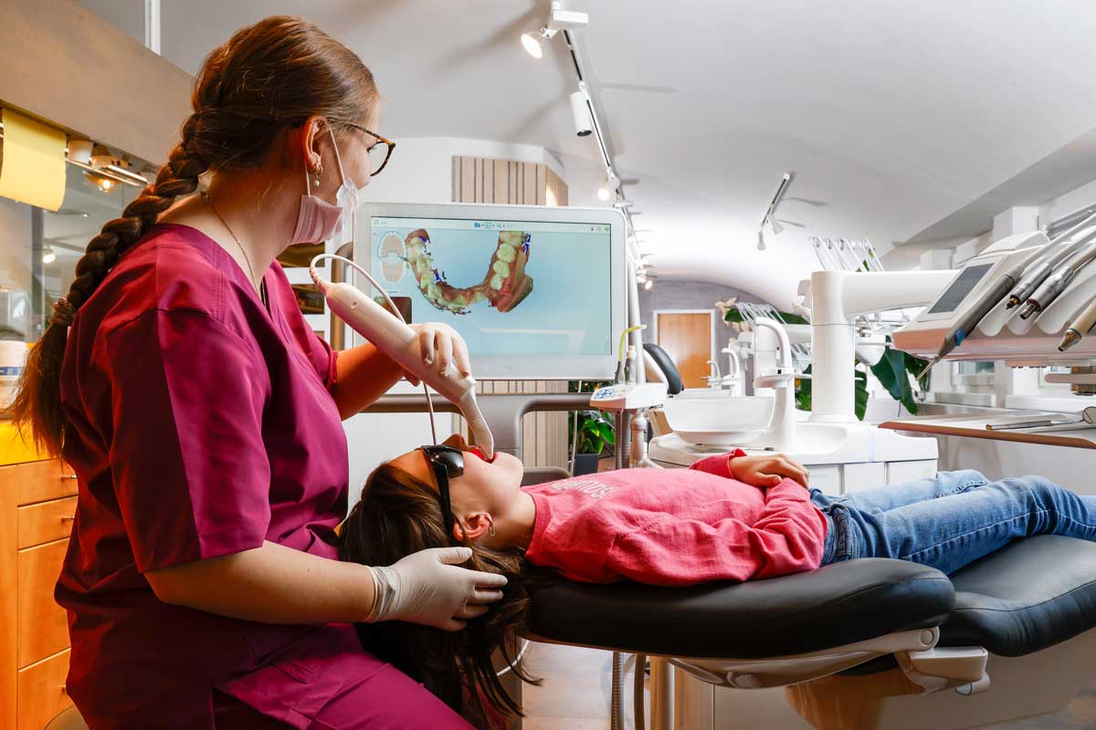Wir bieten Ihnen ein breites Spektrum an Behandlungsmöglichkeiten – von der fundierten Diagnose bis hin zur optimalen Wahl Ihrer Zahnspange. Unsere moderne Praxis in Tirol setzt auf digitale 3D-Technologie, die herkömmliche Abdrücke größtenteils ersetzt. Ob herausnehmbare Spangen, festsitzende Brackets oder unsichtbare Zahnschienen – unser Ziel ist es, für jede Patientin und jeden Patienten die bestmögliche Lösung zu finden. Ein zentraler Bestandteil einer erfolgreichen kieferorthopädischen Behandlung ist zudem die professionelle Mundhygiene, die in unserer Praxis gezielt auf Ihre Behandlung abgestimmt wird – für langfristige Zahngesundheit und optimale Ergebnisse.